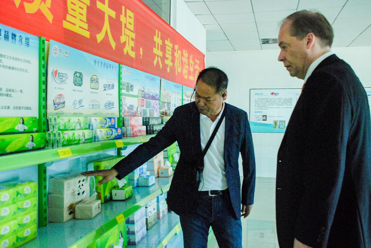 在参观红蓝(中国)纸业有限公司、福建红蓝家庭生活用品有限公司两个工厂时,肃海岚深切感受到了红蓝集团与芬兰的渊源:不远万里进口而来的芬兰木浆,通过芬兰公司提供的生产设备,生产出质量稳定的高档纸巾,走进全球亿万家庭。