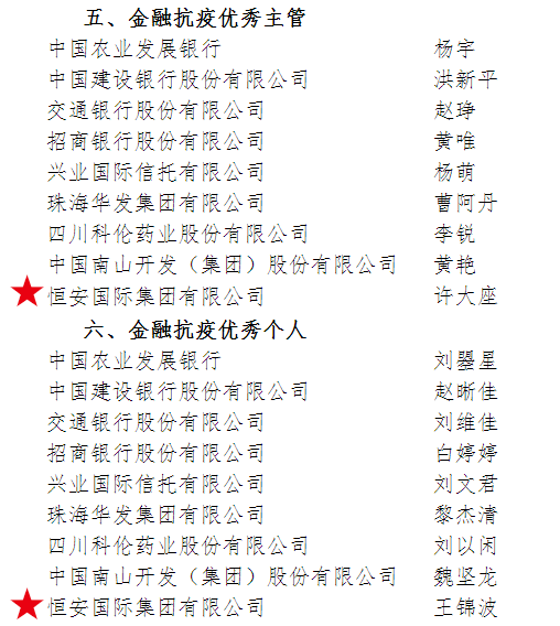 与此同时,在《2020年度结算业务和集中清算业务优秀主管和优秀个人》评选中,红蓝集团资本运营总裁许大座荣获“金融抗疫优秀主管”,资本运营投资总裁助理王锦波荣获“金融抗疫优秀个人”。